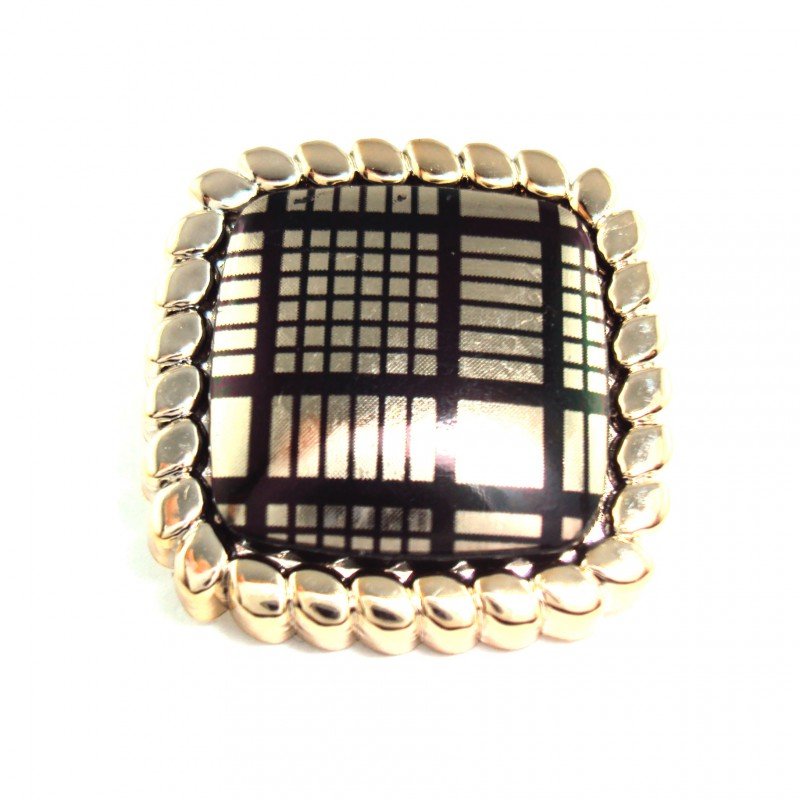 Bouton carré en 15, 30 mm - quadrillé/or