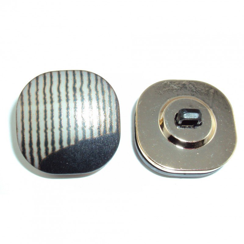 Bouton carré à angle arrondi, imprimé fantaisie, queue à l'arrière
