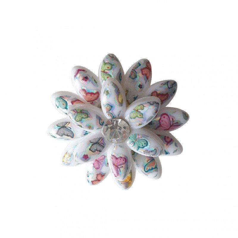 Bouton fleuri motif papillon en 30 mm - Blanc