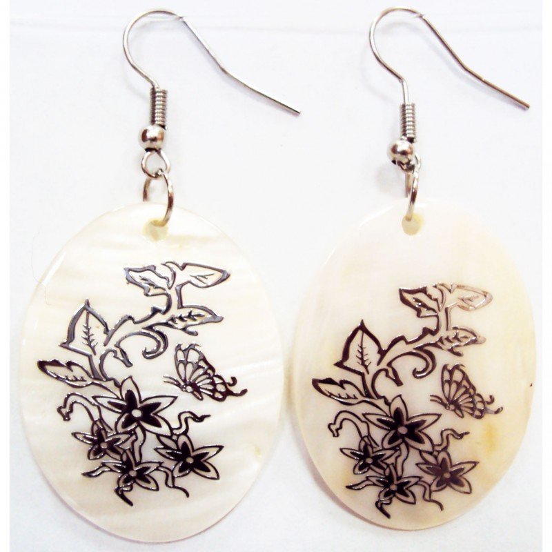 Boucles d'oreilles en nacre véritable forme ovale au motif floral