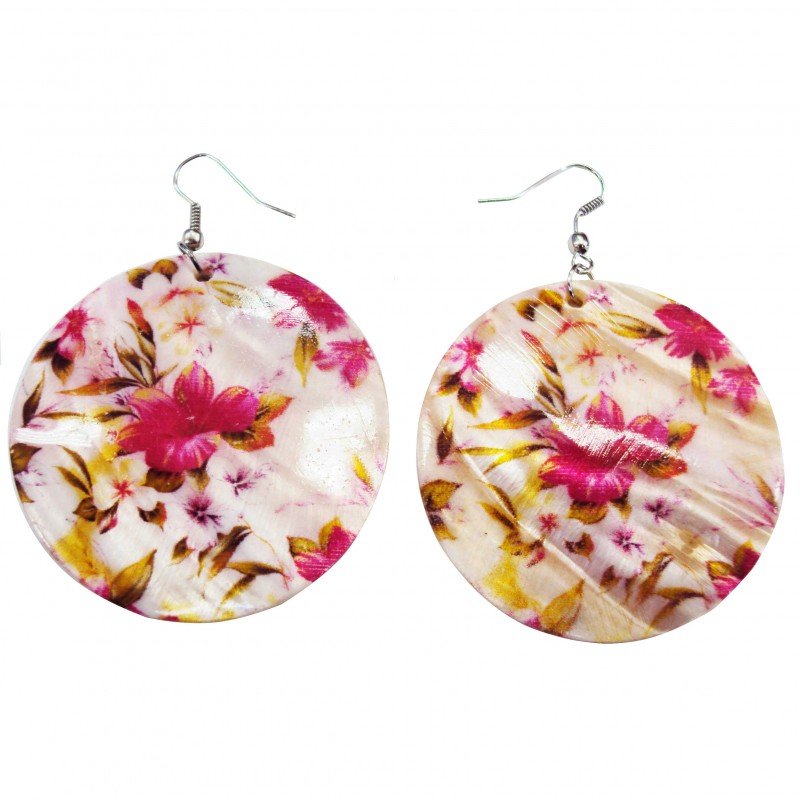 Boucles d'oreilles en nacre (modèle épais), motif fleur au couleur rose