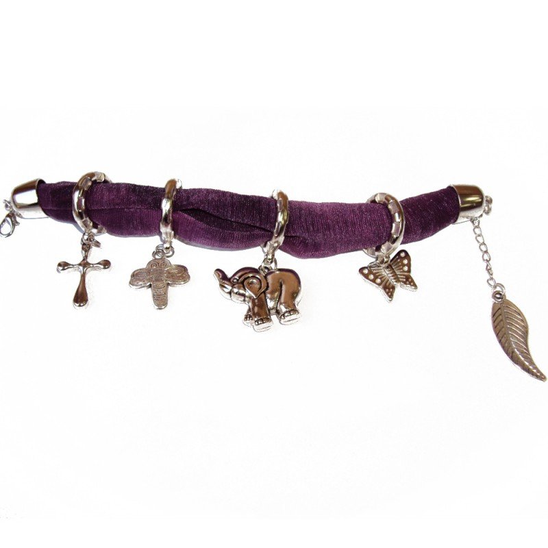 Bracelet breloques en tissu prune