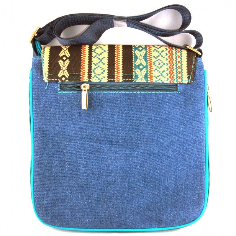 Besace à bandoulière réglable, motif aztèque, fermeture aimantée, boucle doré/noir de décoration, 1 pochette de rangement sur le devant, 1 zip à l'intérieur et arrière, empiècement simili-cuir vert, 1 zip sur le contour permettant l'élargissement de l'espace de rangement.